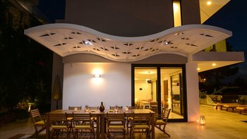 Bitte beachten Sie, dass sich das Kalamar Hotel in der Nähe des Hauses befindet und während der Hochsaison gelegentlich zu hören ist.