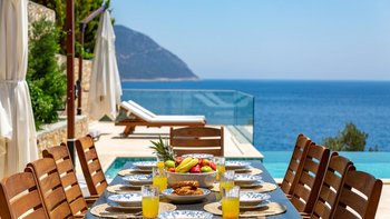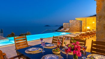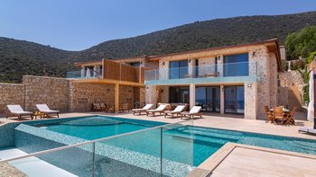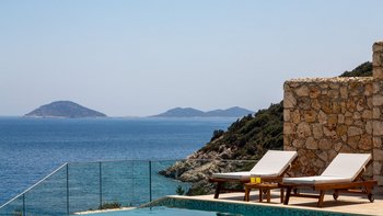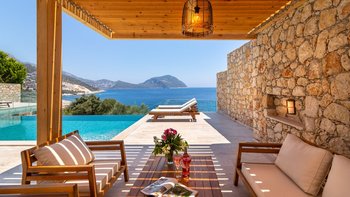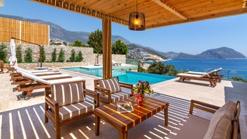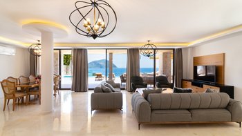 Die moderne und geräumige Unterkunft Villa Kenar in Kalkan bietet viel Platz zum Entspannen und Unterhalten. Sie bietet direkten Zugang zum Strand.