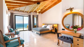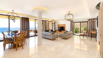 Die Villa bietet Zugang zu sechs Badeplattformen im Beach Club-Stil, die direkt am Wasser gelegen sind. Diese sind privat für das Anwesen bestehend aus sechs Häusern, die für größere Gruppen von bis zu 30 Personen zusammen gebucht werden können. Dazu gehören die Villa Sahil, die Villa Keyali, die Villa Akim I, die Villa Akim II und die Villa Akim III.