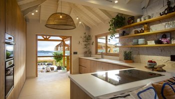 Das Herzstück des Hauses ist die weitläufige Terrasse. Hier finden Sie einen atemberaubenden versunkenen Loungebereich, einen Holzofen für Abendessen und einen Infinity-Pool, der mit dem azurblauen Wasser des Hafens zu verschmelzen scheint. Für diejenigen, die einen Wellness-Ausflug suchen, gibt es auf der unteren Ebene einen privaten Fitnessraum und eine Sauna, während die Schlafzimmeraufteilung, Split auf das Haupthaus und zwei charmante Cottages, eine ideale Balance aus Zweisamkeit und Privatsphäre für Familien mit mehreren Generationen bietet.