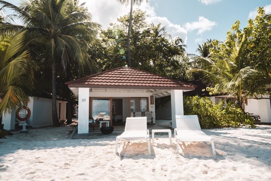 - 31-35 qm, Villa, Strandlage, Meerblick, nach oben halb offenes Bad, Außendusche, WC, Bademantel, Haartrockner, Holzboden, Klimaanlage, Ventilator, Minibar, Safe, WLAN, Wasserkocher, Kaffee/Tee, Terrasse (möbliert)