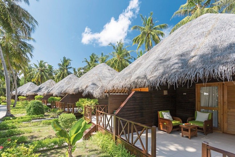 - 51-60 qm, Doppel, Deluxe, im Reihenbungalow, Meerseite, optisch getrennter Wohn-/Schlafraum, Badewanne, WC, Haartrockner, Klimaanlage, Ventilator, Minibar kostenpflichtig, Safe, TV, Wasserkocher, Kaffee/Tee, Terrasse (möbliert)