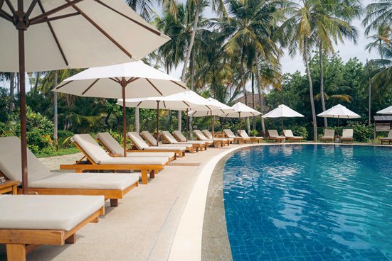 - 81-90 qm, Villa, freistehend, Strandlage, kombinierter Wohn-/Schlafraum, Dusche, Whirlwanne, WC, Haartrockner, Holzboden, Klimaanlage, Minibar kostenpflichtig, Safe, TV, Wasserkocher, Kaffee/Tee, Terrasse (möbliert), direkter Strandzugang, Privatpool