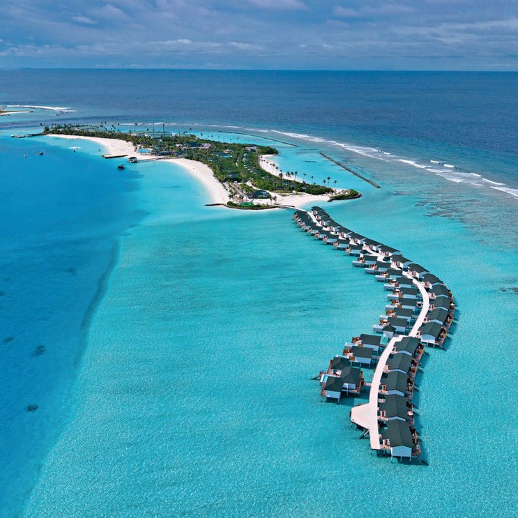 - 91-100 qm, Suite, freistehend, Sonnenuntergangsseite, Wasserbungalow (auf Stelzen über der Lagune), Meerblick, kombinierter Wohn-/Schlafraum, Dusche, Badewanne, WC, Bademantel, Haartrockner, Klimaanlage, Ventilator, Minibar, Auffüllung täglich, Softdrinks, Bier, Hauswein, Wasser, TV, WLAN, Wasserkocher, Espressomaschine, Kaffee/Tee, Terrasse (möbliert), direkter Meerzugang, Privatpool
