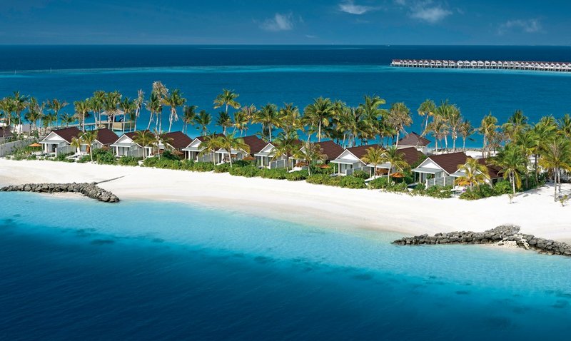 - 71-80 qm, Villa, freistehend, Wasserbungalow (auf Stelzen über der Lagune), nach oben halb offenes Bad, Badewanne, Regendusche, WC, Bademantel, Badeslipper, Haartrockner, Holzboden, Klimaanlage, Minibar, Auffüllung täglich, Softdrinks, Bier, Hauswein, Snacks, Safe, Bügelbrett, Bügeleisen, TV, WLAN, Sonnendeck (möbliert, Hängematte), direkter Meerzugang, Privatpool