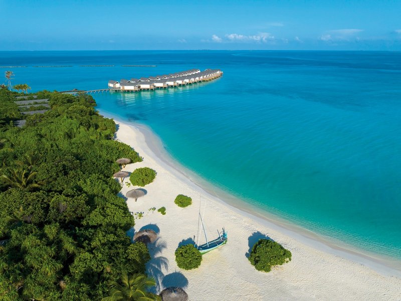 - 71-80 qm, Villa, freistehend, Wasserbungalow (auf Stelzen über der Lagune), Meerblick, Sitzecke, Dusche, WC, Bademantel, Badeslipper, Klimaanlage, Minibar, Auffüllung täglich, Softdrinks, Bier, Hauswein, Snacks, Safe, Bügeleisen, TV, WLAN, Wasserkocher, Espressomaschine, Kaffee/Tee, Sonnendeck (möbliert, Hängematte), direkter Meerzugang