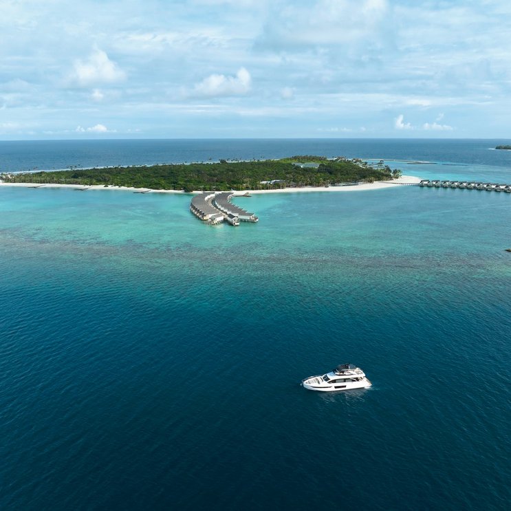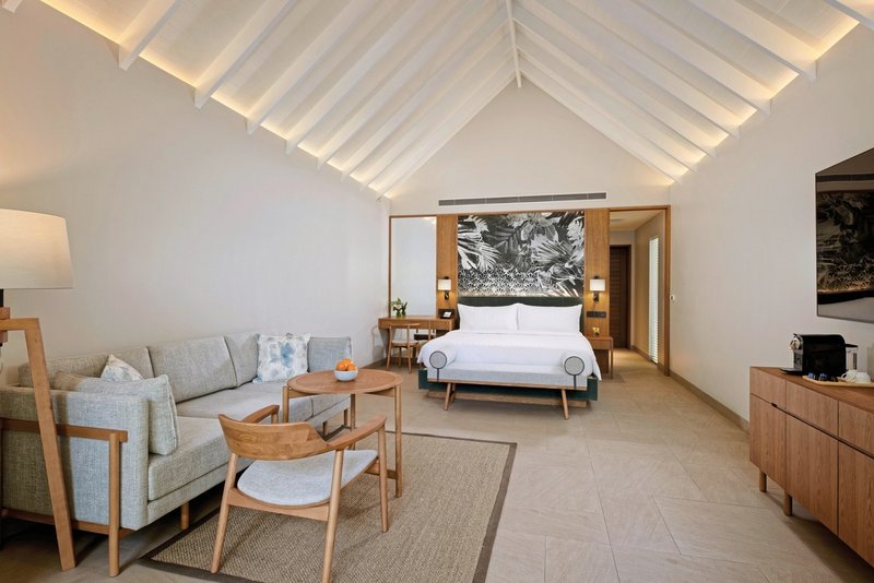 - 71-80 qm, Villa, freistehend, Wasserbungalow (auf Stelzen über der Lagune), Meerblick, Sitzecke, Dusche, WC, Bademantel, Badeslipper, Klimaanlage, Minibar, Auffüllung täglich, Softdrinks, Bier, Hauswein, Snacks, Safe, Bügeleisen, TV, WLAN, Wasserkocher, Espressomaschine, Kaffee/Tee, Sonnendeck (möbliert), direkter Meerzugang, Plunge Pool