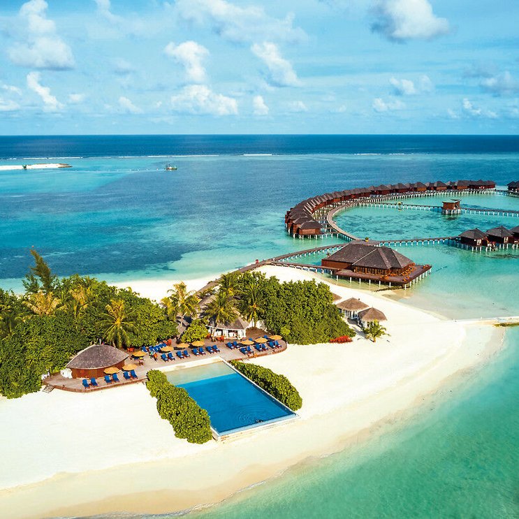Ihre Vorteile: Auf zwei, durch eine kleine Brücke miteinander verbundenen Inseln gelegen: Die ca. 740 m x 140 m große Haupinsel Olhuveli mit üppiger Vegetation und die ca. 330 m x 170 m große „Dream Island“