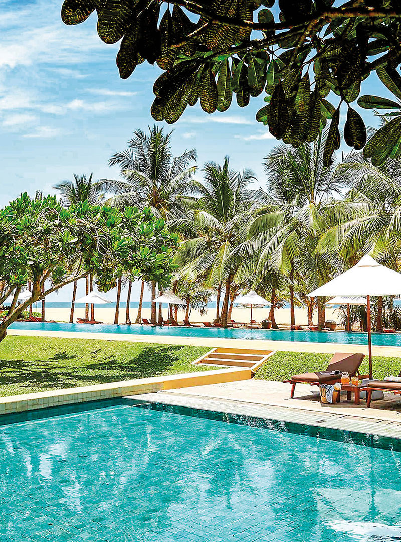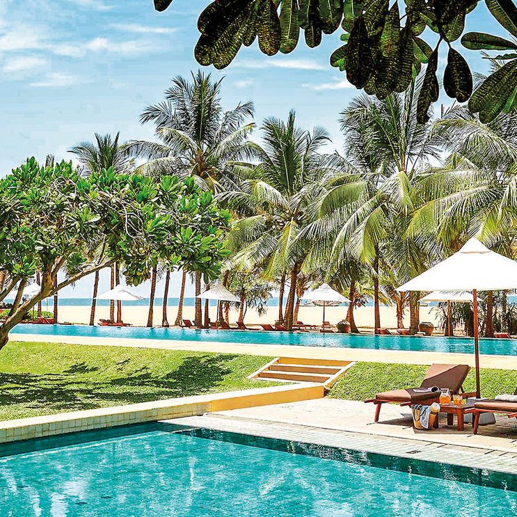 Das Resort liegt wunderschön am Sandstrand von Negombo. Entworfen vom singhalesischen Stararchitekten Geoffrey Bawa, ist es ein gutes Beispiel für seine typische Architektur.