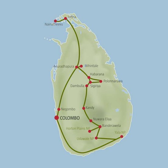 Diese spannende Reise mit Studienreisecharakter führt Sie einmal durch das komplette Land von ganz im Norden bis ganz in den Süden. Für alle, die sich intensiv mit Sri Lanka auseinandersetzen und die Vielseitigkeit der Insel in allen Aspekten erleben möchten. Neben kulturellen Höhepunkten wie Königsstädten und Tempelanlagen sind auch das Bestaunen der natürlichen Schönheiten im Hochland sowie der Nationalparks Ziel dieser Reise. Ein ganz besonderes Highlight ist der Besuch der lange durch den Bürgerkrieg nicht touristisch erschlossenen Stadt Jaffna sowie der umliegenden Region ganz im Norden des Landes. Der Tourismus findet langsam seinen Weg zurück in dieses Gebiet und offenbart lange verborgene Schätze an Sehenswürdigkeiten.