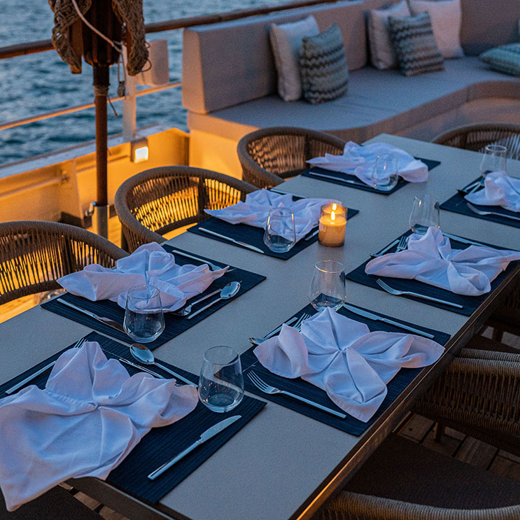 Das neuste Flottenmitglied ab der Sommersaison 2024 heisst GEMAYA. Die 33 Meter lange Motoryacht wurde renoviert und bietet mit 5 Kabinen Platz für 10 bis 12 Gäste. 6 Crewmitglieder sorgen für Ihr Wohlbefinden und teilen Ihr Insiderwissen über die Destination. Eine wahrhaft private und exklusive Atmosphäre!