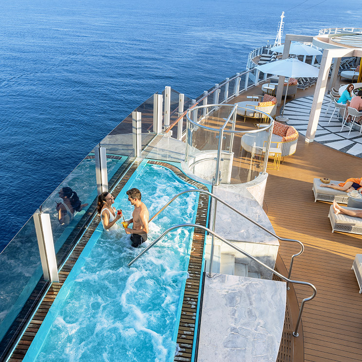 Ein besonderes Mass an Privatsphäre und Ruhe finden anspruchsvolle Gäste auf den oberen Decks auf ausgewählten Schiffen, The Haven by Norwegian™. Hier befinden sich die grössten und luxuriösesten Suiten. Alle verfügen über einen Service auf höchstem Niveau und exquisiten Annehmlichkeiten, wie Concierge-Service, 24-Stunden-Butlerservice oder auch bevorzugte Ein- und Ausschiffung. In diesem nur mit einer entsprechenden Schlüsselkarte zugänglichen Bereich liegt der Haven Courtyard, ein privater Innenhof mit Pool, Whirlpool, Sonnendeck, Fitnessraum und Sauna. Der perfekte Ort zum Entspannen, Dinieren und Geniessen.