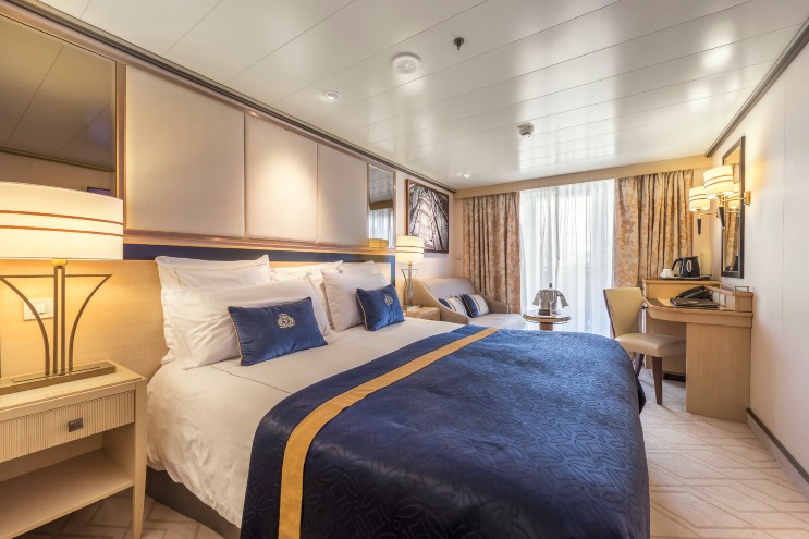 Unterkunft: Die eleganten Kabinen (ca. 23 m²) verfügen über ein Bad mit Dusche/WC, Föhn; Klimaanlage, Sitzecke und Schreibtisch; TV, Minibar, Telefon, Safe. Wahlweise mit Balkon. Die Gäste der Aussen- und Balkonkabinen speisen im Britannia-Restaurant und wählen vor Abreise eine frühe, späte oder flexible Essenssitzung.
