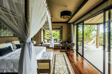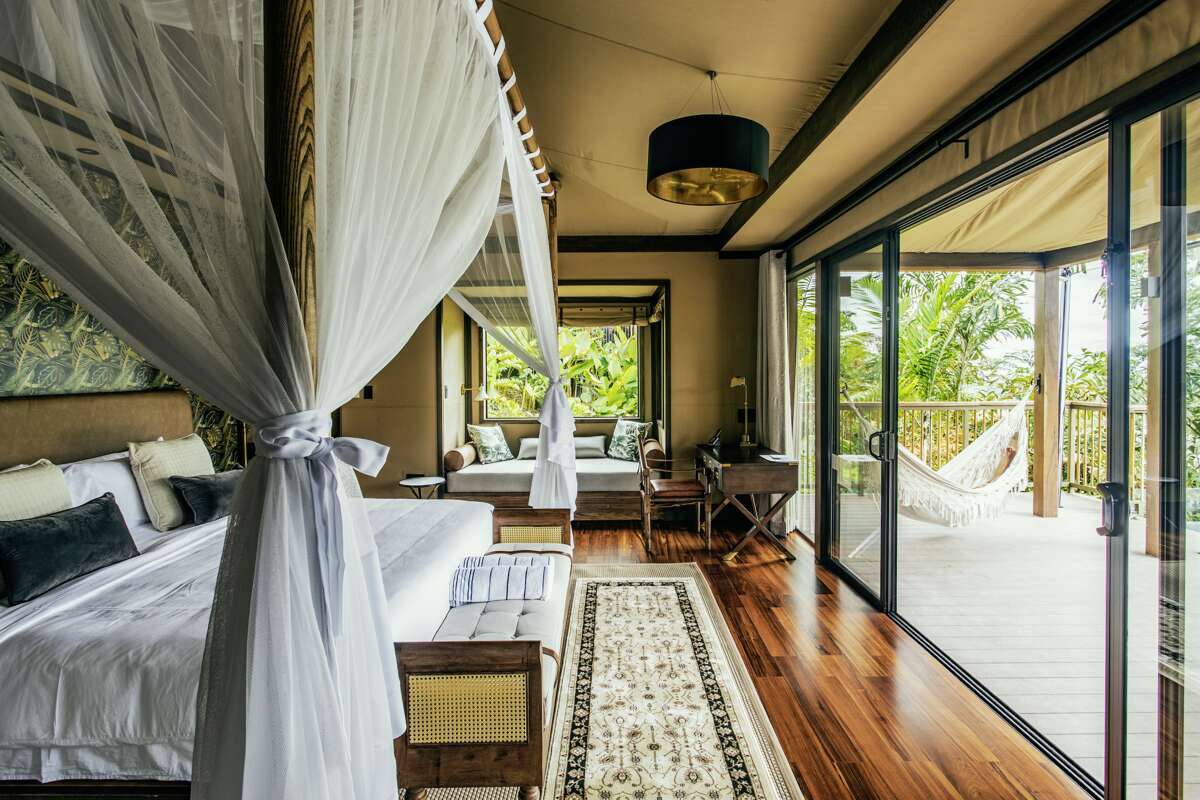 Am Fusse des majestätischen Vulkans befinden sich die 18 neu errichteten Luxus-Zelte als Teil des exklusiven Nayara Resorts. Mit spektakulären Aussichten auf den Vulkan, Bad, Outdoor-Dusche, Klimaanlage, Holzfussboden sowie einer Terrasse mit Plunge Pool, gespeist aus den heissen Quellen der Umgebung, bieten die Zelte höchsten Komfort. Ein Empfangszelt, der grosse Swimmingpool mit swim-up Bar, kleine Thermalpools und ein neues Gourmetrestaurant sorgen für optimale Erholung und Genuss.