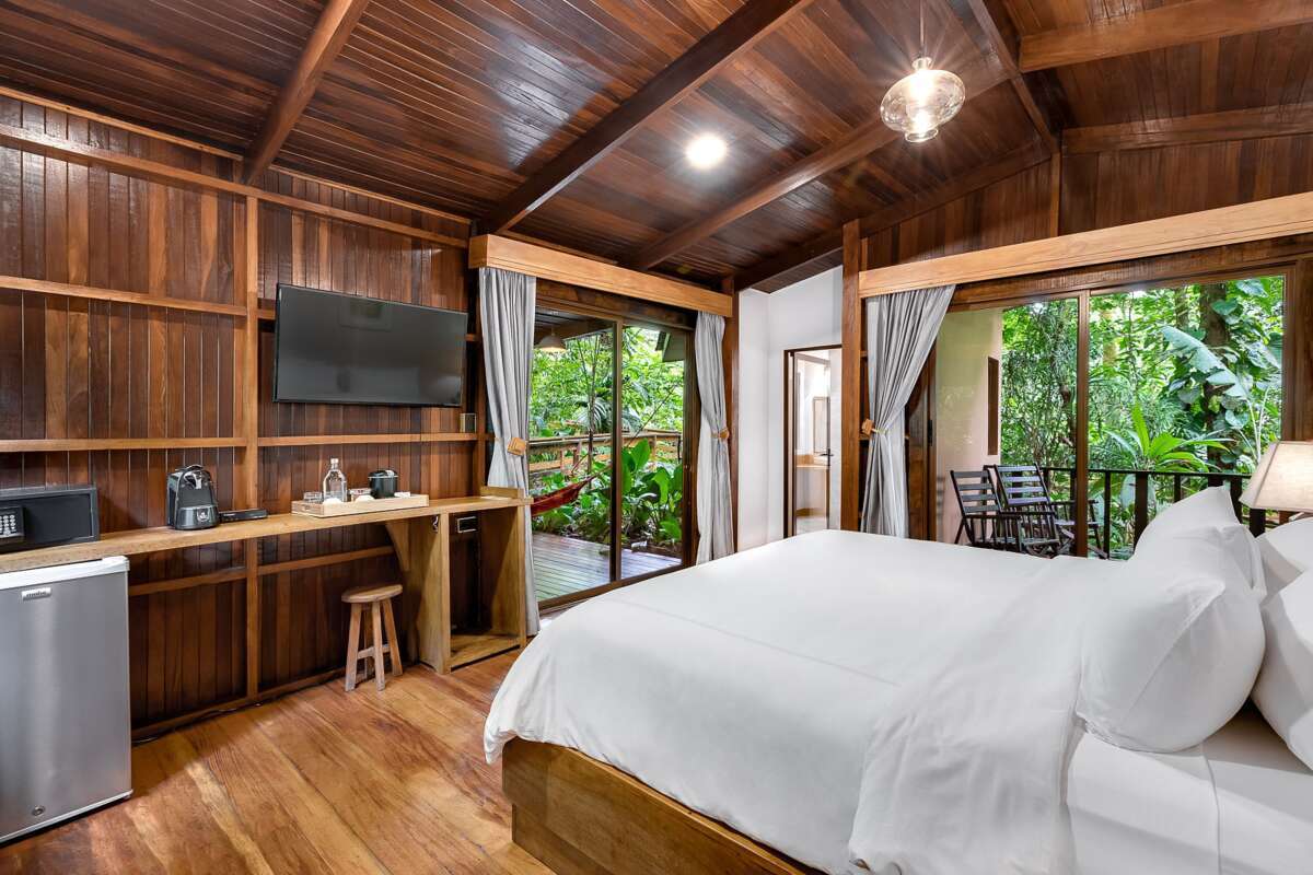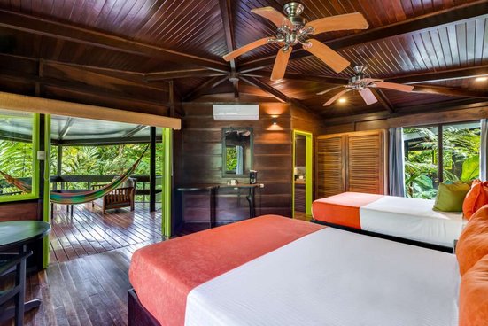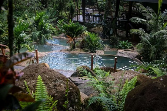 InfrastrukturKomfortable, wunderschön in der Natur eingebettete Zimmer in sieben verschiedenen Kategorien. Alle Zimmer verfügen über Klimaanlage, Kaffeemaschine, Safe, Terrasse, WiFi und teilweise Whirlpool oder Hängematte. Zur Infrastruktur gehören ein offenes Restaurant mit authentischer Küche, wofür meist Zutaten aus eigenem Anbau gwählt werden, Swimmingpool, Thermalbäder, ein Tour Desk sowie Wanderwege im privaten Regenwaldreservat.