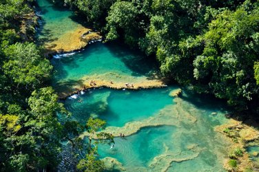 Fahrt zurück nach Guatemala. Einen ersten Stopp machen Sie heute beim Quetzal-Biotop, welches nach dem Nationalvogel Guatemalas benannt ist. Bei einer Wanderung lernen Sie das Ökosystem des Nebelwaldes kennen und lernen viel über die lokale Flora und Fauna. Am nächsten Tag erwartet Sie eine kurvige und holprige Fahrt nach Semuc Champey, eine etwa 300 m lange natürliche Kalkstein-Brücke, auf welcher sich treppenartig angeordnete Naturpools befinden. Geniessen Sie ein Bad und machen Sie eine Wanderung zum Aussichtspunkt.