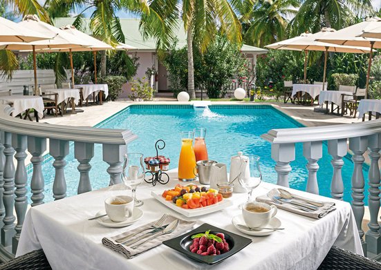 Farbenfroher Urlaub! Die Häuser in Pastelltönen mit weißen Fensterrahmen und Säulen kontrastieren vor dem strahlend blauen Himmel. Hibiskus, Bougainvilleen und Co. setzen weitere Akzente.