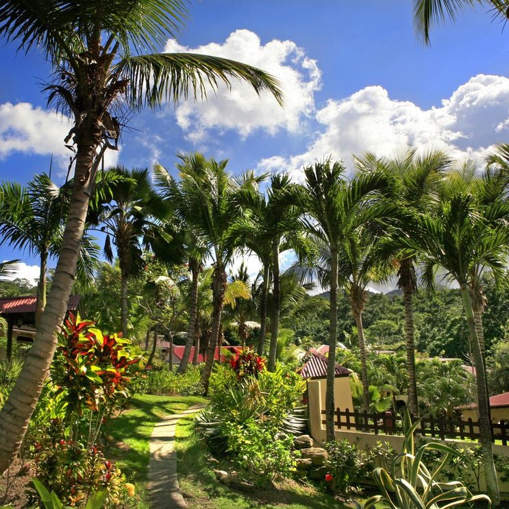 Diese wunderschöne Anlage mit üppigem Garten liegt an einem Hügel, etwa 300 m oberhalb des Strandes Grande Anse. Der Ausblick ist fantastisch! Ein schöner, gepflegter Poolbereich sorgt für Erfrischung.