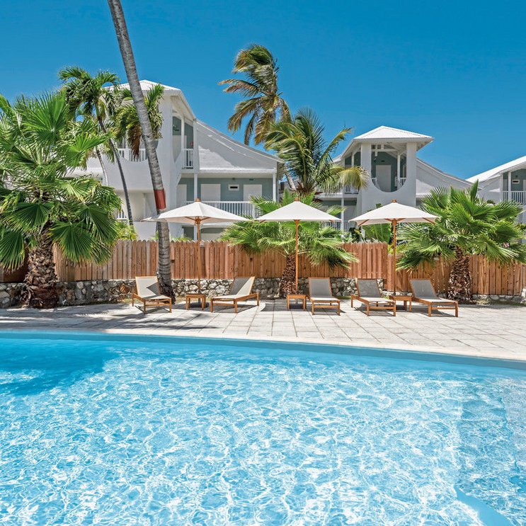 Baden, Wassersport, relaxen am Pool oder auf der Liege am Strand: All das und noch viel mehr geht in dem Boutiquehotel an der Orient Bay. Die Bucht ist berühmt als Meeresschutzgebiet.