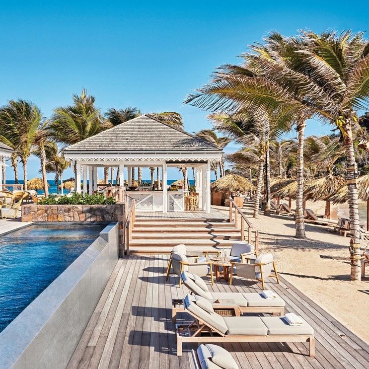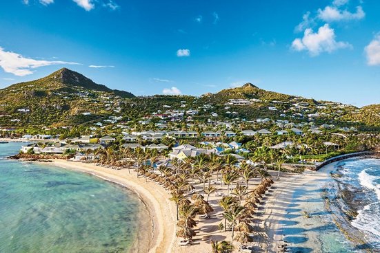 Lässiger Luxus! Der traumhafte Sandstrand von St. Barth ist „the place to be" für den internationalen Jetset. Genau wie dieses charmante Resort, das zu den „Leading Hotels of the World“ zählt.