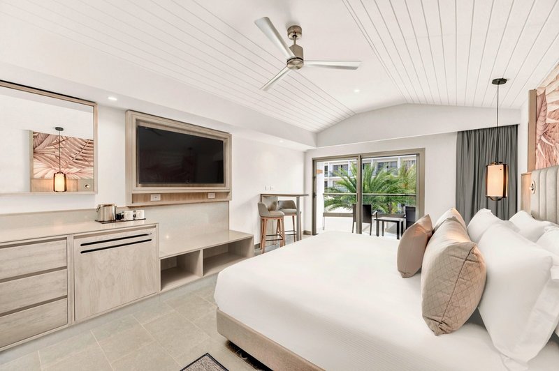 - 41-45 qm, Juniorsuite, Meerseite, Moskitonetze, 2 Doppelbetten (Queensize), Regendusche, Bademantel, Badeslipper, Haartrockner, Kosmetikspiegel, Fliesen, Klimaanlage, individuell regulierbar, Ventilator, Minibar, Softdrinks, Wasser, Safe, Bügelbrett, Bügeleisen, TV (Sat-TV), WLAN, Terrasse (möbliert), direkter Poolzugang