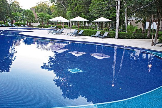 Moderne Architektur trifft auf üppiges Grün: Die Gebäude scheinen mit der Natur zu verschmelzen. Das schönste Grün aber – zumindest für die Golfer – finden Sie direkt nebenan: im Riviera Maya Golf Club mit einem 27-Loch-Golfplatz für Spieler von Anfänger bis Könner!