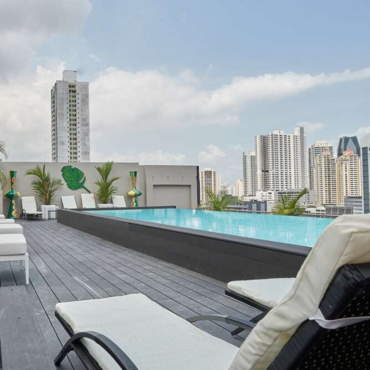 Das moderne Gran Evenia Panama liegt zentral im Stadtteil El Cangrejo und wurde 2022 eröffnet. Das stilvolle 4-Sterne-Hotel überzeugt mit zeitgenössischem Design und einer entspannten Atmosphäre. Highlight ist die Dachterrasse im 10. Stock mit Pool und verschiedenen Lounge-Bereichen, die zum Abschalten über den Dächern der Stadt einlädt. Im Restaurant El Jardin de Gaudi werden klassische panamaische und internationale Gerichte aus frischen, lokalen Zutaten serviert. Das Hotel ist die perfekte Wohlfühloase für Städtereisende und ein idealer Ausgangspunkt für Entdeckungstouren in Panama City.