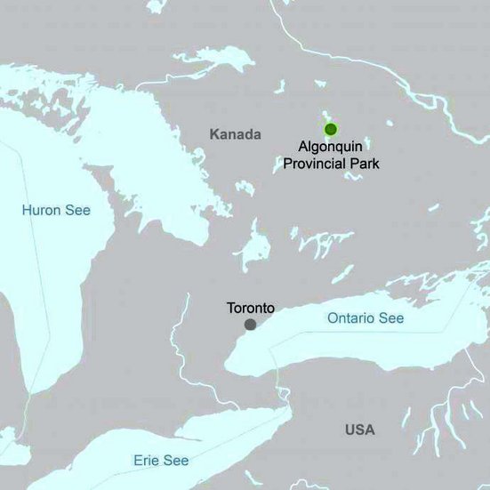 (Mo, Fr) Ca. 12:30 Uhr Treffpunkt im Algonquin Provincial Park und Mittagessen. Nach einer kurzen Einführung paddeln Sie nach Kitchie Island. Nachmittag zur freien Verfügung. Typisch kanadisches Abendessen und Dämmerungs-Kanutour. 2 Nächte in der Algonquin Log Cabin-Lodge. (M, A)