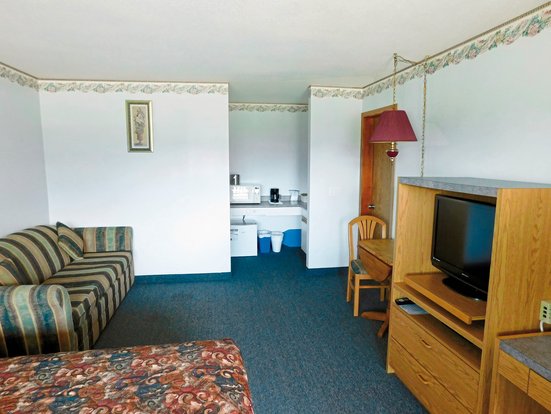 - Sitzecke, 1 Doppelbett (Queensize), Dusche oder Badewanne, WC, Haartrockner, Klimaanlage, Mini-Kühlschrank, TV, WLAN, Mikrowelle, Kaffeemaschine