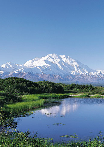 Denali NP, Alaska: Ein Besuch im Denali National Park mit seinen gewaltigen Gebirgsketten und der vielfältigen Tierwelt lohnt sich immer. Bei klarer Sicht sind sogar die schneebedeckten Gipfel des höchsten Berges der USA, der Mt. McKinley, sichtbar.