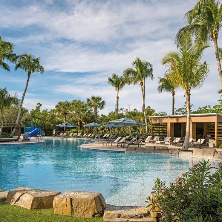 Sonne tanken an der schönen Estero Bay, mitten in einem tropischen Park nahe dem Meer! Erfrischung gefällig? Absolute Highlights sind die Poollandschaft und der Lazy River Waterpark mit rasanten Rutschen. Nicht nur Kinder fahren darauf ab!
