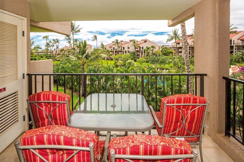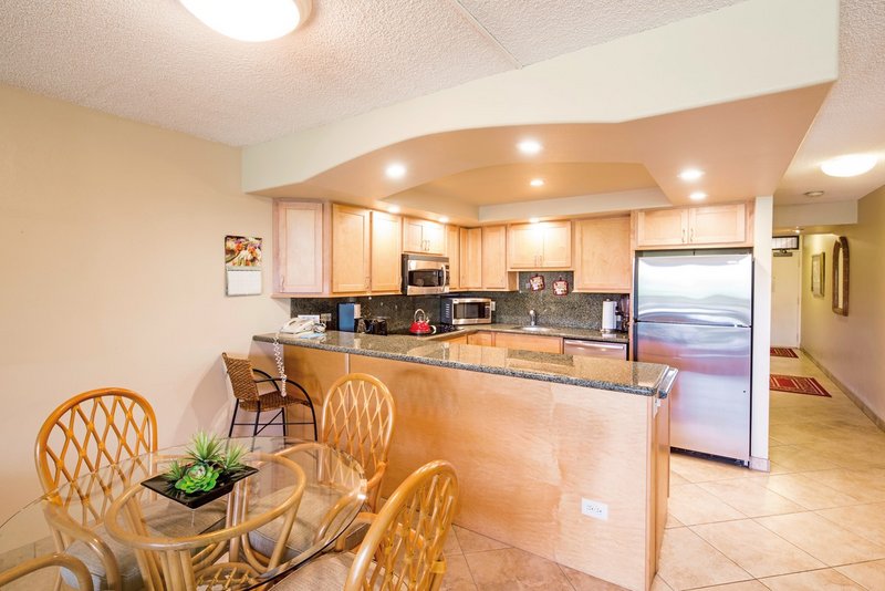 Nur durch die Uferstraße vom Kamaole Beach Park III getrennt erstreckt sich die Anlage über einen 6 Hektar großen Landschaftspark mit Fischteichen und Brunnen. Die Suiten verfügen über eine voll ausgestattete Küche.