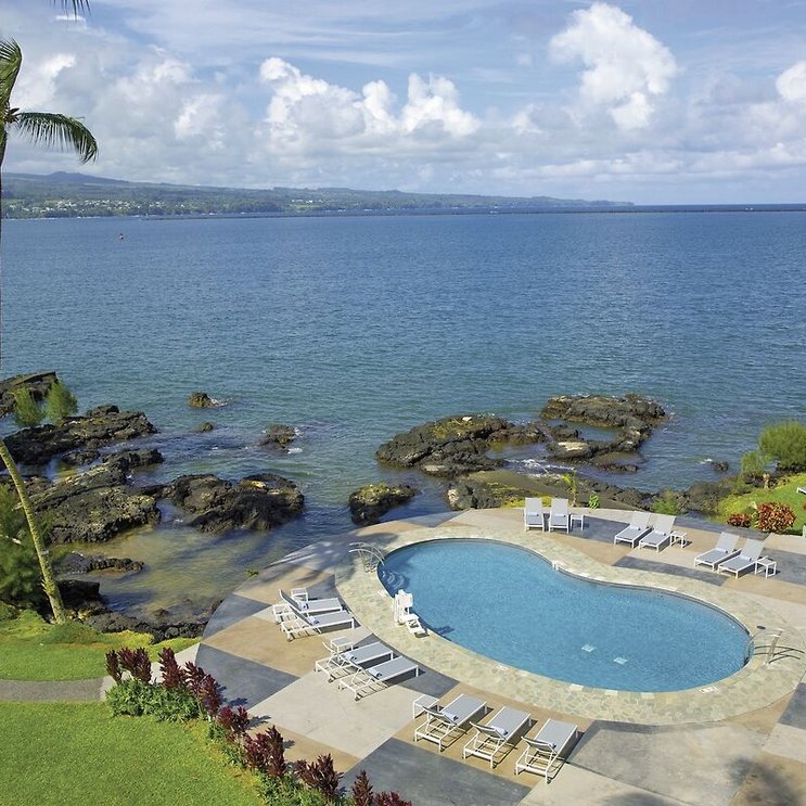 Das Hotel am Meer liegt nur 10 Minuten vom internationalen Flughafen Hilo entfernt und bietet einen herrlichen tropischen Panoramausblick. Spielen Sie auf dem 9-Loch-Golfplatz direkt neben dem Hotel oder mieten Sie sich Wassersportausrüstungen, um den Pazifik zu erkunden. Naturwunder wie die Kaumana-Höhlen, die Rainbow Falls und die Meeresschildkröten im Carlsmith Beach Park sind nur ca. 10 km entfernt.