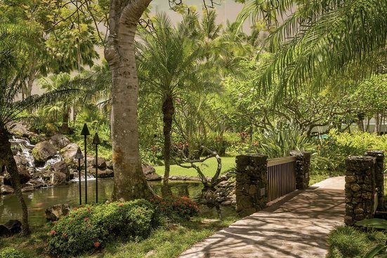 Hier wird Abwechslung großgeschrieben. Wasserrutschen, Wasserfälle und der größte Pool Hawaiis erwarten Sie hier. Zudem haben Sie direkten Zugang zu einem der schönsten Badestrände Kauais.