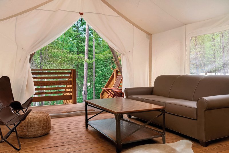 Erleben Sie ein luxuriöses Glamping-Erlebnis nahe einer spektakulären Naturkulisse.