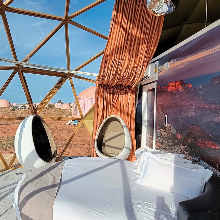 Glamping trifft Sterne! Spektakuläre Sky Domes kugelförmig erbaut, inmitten der Wüste mit Panoramafenstern bis unter die Decke. Ideal für Sternenbeobachtung bis zur Milchstrasse, gemütlich vom Bett aus. Der freie Blick auf die Sternenwelt, dank der minimaler Lichtverschmutzung im offiziell ernannten Dark-Sky-Resort, wird Sie bei geführten Wanderungen staunen lassen.