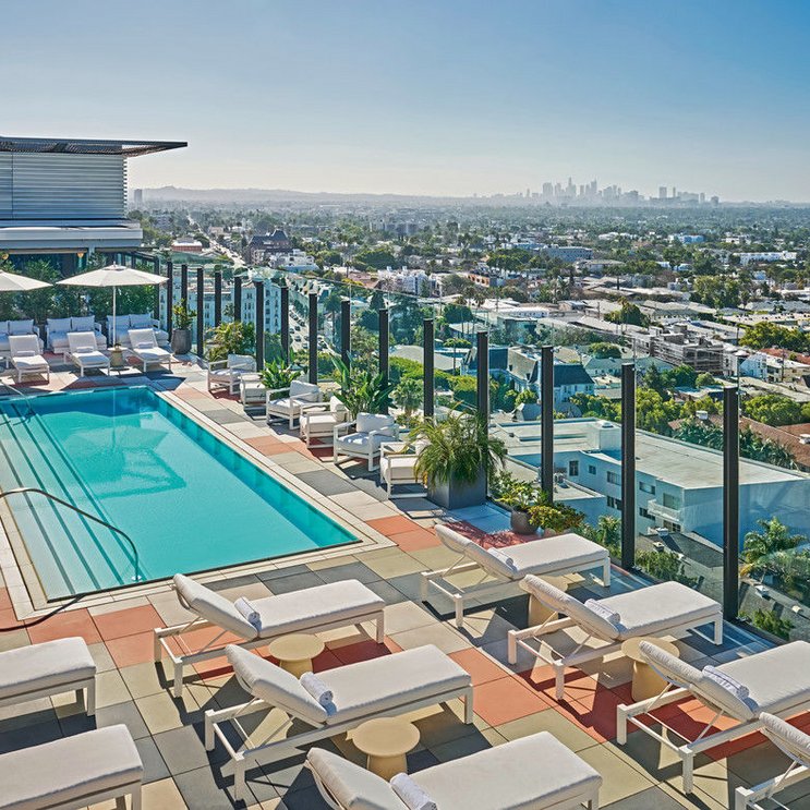 The Sun Rose West Hollywood – ein pulsierendes Luxushotel direkt am legendären Sunset Strip. In 149 stylischen Zimmern und Suiten, modern interpretiert im Art-Deco-Look und inspiriert von kalifornischen Sonnenuntergängen, werden Sie von glamouröser Atmosphäre und frischem Design empfangen. Freuen Sie sich auf ein einzigartiges Erlebnis. Ein stilvolles Refugium für Reisende, die Design, Lifestyle und Entertainment auf hohem Niveau verbinden möchten.