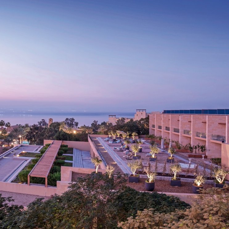 Die aus Haupthaus und Villen bestehende, im babylonischen Stil gestaltete Anlage liegt am ca. 450 m langen Sandstrand des Toten Meeres und eignet sich ideal für einen Erholungsurlaub.