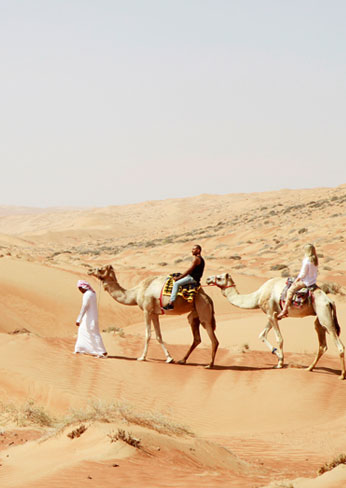 Die Wahiba Sands sind für ihre goldenen Dünen bekannt, ideal für Wüstencamps und Kameltouren. Das Rub al-Khali, die grösste Sandwüste der Welt, beeindruckt mit endloser Weite. In den Bergen bietet der Jebel Shams, der „Grand Canyon des Oman“, spektakuläre Ausblicke, während der Jebel Akhdar mit fruchtbaren Terrassen und kühlerem Klima überrascht.