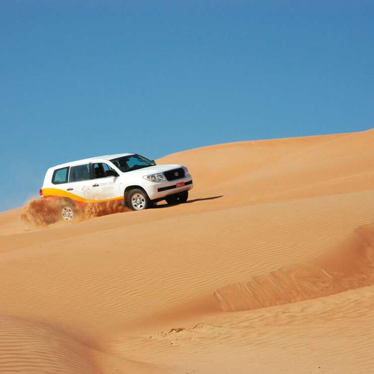 Ca. 20 km südlich von Nizwa lohnt sich der Besuch des neuen, eindrucksvollen Museums Across Ages. Anschliessend Weiterfahrt zum Sinaw Markt und weiter über Mudhaybi in die Inlandswüste Wahiba Sands. Sie können heute oder am nächsten Morgen das Wadi Bani Khalid, das als schönstes Wadi von Oman gilt, besuchen. Machen Sie einen Spaziergang entlang des Flusslaufes oder nehmen Sie ein Bad im glasklaren, erfrischenden Wasser. Anschliessend führt Sie die 40 km lange Strecke durch die faszinierende Wüste zu Ihrer heutigen Unterkunft. Geniessen Sie den Sonnenuntergang auf einer der grossen Sanddünen und anschliessend den atemberaubenden Sternenhimmel der Wüste über Ihnen. Eine Nacht im malerischen 1000 Nights Sharqiya Sands Camp in komfortablen Unterkünften mit Zeltdachkonstruktion und angeschlossenem Freiluftbad mit Handbrause/WC (Mittelklasse) (bei Aufenthalt 1.4.-30.4. oder 1.10.-31.10.) bzw. im Desert Nights Resort (gehobene Mittelklasse) (bei Aufenthalt 1.5.-30.9. oder ähnlich. Ca. 420 km (F, A)
