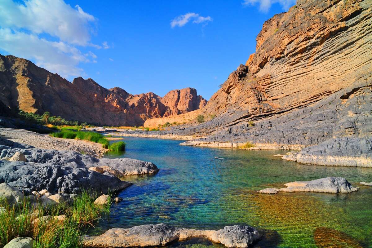Fahren Sie zunächst nach Sur und besichtigen Sie die traditionelle Dhau-Werft. Auf Ihrem Weg nach Muscat lohnen sich Stopps an Bibi Miriams Grab, am Fins Strand und am Bimmah Sinkhole, ein eindrucksvoller natürlicher Krater. Die wasserführenden und palmengesäumten Wadi Tiwi und Wadi Shab bieten sich für einen Spaziergang an. Zum Abschluss geht es Off-Road durch das Wadi Arbayeen und über Mazara nach Muscat. Abgabe des Mietwagens am Flughafen oder im separat gebuchten Verlängerungshotel in Muscat. Ca. 355 km (F)