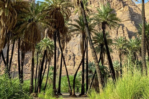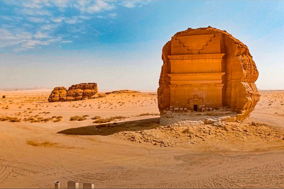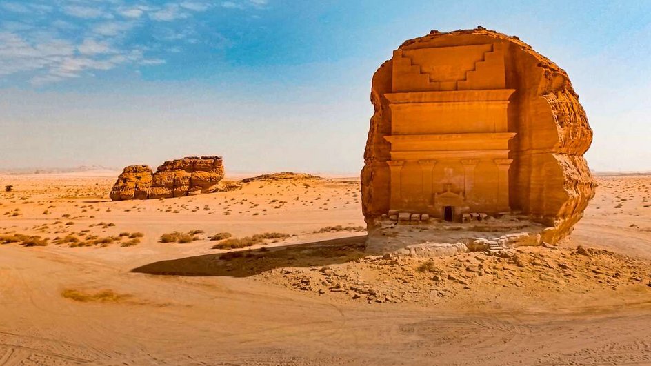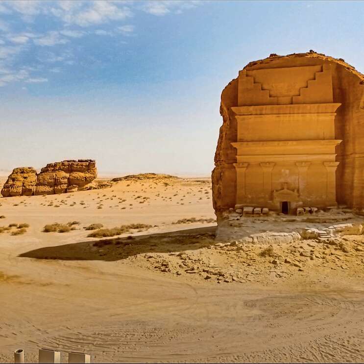 (Montag) Heute machen Sie sich auf den Weg nach AlUla, häufig auch als «Schatzkammer Saudi-Arabiens» bezeichnet. Zuerst sehen Sie die Maraya Konzert Halle, ein atemberaubendes Kunstwerk in der Wüstenschlucht des Ashar-Tals. Es wurde so entworfen, dass es sich in die umgebende Landschaft einfügt und sich wie eine Fata Morgana aus dem Sand erhebt. Das hochmoderne Bauwerk ist mit 9.740 Spiegelpaneelen bedeckt, die die Schönheit AlUlas widerspiegeln und damit das grösste verspiegelte Gebäude der Welt. Von dort geht es in die Altstadt AlUlas, die im 12. Jahrhundert zu einer wichtigen Siedlung entlang der Pilgerroute von Damaskus nach Mekka wurde. Die Häuser waren so konzipiert, dass sie aneinandergebaut wurden, was darauf hindeutet, dass die Verteidigung für die frühen Bewohner der Stadt eine Priorität war. Einst war die Stadt durch 14 Tore zugänglich, die morgens geöffnet wurden, um Reisende, Pilger und andere Besucher zu empfangen, und abends wieder geschlossen wurden. Im Anschluss fahren Sie zum legendären „Elephant Rock" (Jabal AlFil), der aus natürlichen Kräften, Millionen von Jahren der Erosion durch Wind und Wasser, geformt wurde. Seine Schönheit wird durch die Umgebung noch verstärkt, die aus einem feinsandigen Meer besteht, das mit Felsen übersät ist, von denen viele eine ebenso beeindruckende Grösse haben und ebenso interessante Formen und Figuren aufweisen. Ein wundervoller Anblick, wenn die Sonne kupferrot dahinter versinkt. Eine Nacht im Sahary AlUla Resort. (Frühstück, Abendessen).