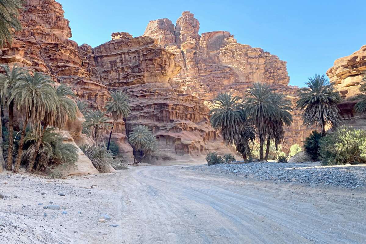 (Sonntag) Am Morgen Inlandsflug von Riad nach Tabuk. Nach Ankunft erwartet Sie eine unvergessliche Wüstentour in den wunderschönen Bergen des Bajda-Gebirges durch enge Passagen und rote Dünen. Sie sehen den Schiffsfelsen mit über 1.300 Jahre alten Inschriften, den Great Arch und den Jubb Canyon, ein spektakulärer Ort, um einen Spaziergang zwischen Sandfelsen mitten in der Wüste zu unternehmen. Eine Nacht in Tabuk im Swiss Inn (gehobene Mittelklasse, Landeskategorie: 4 Sterne). (Frühstück, Mittagessen)