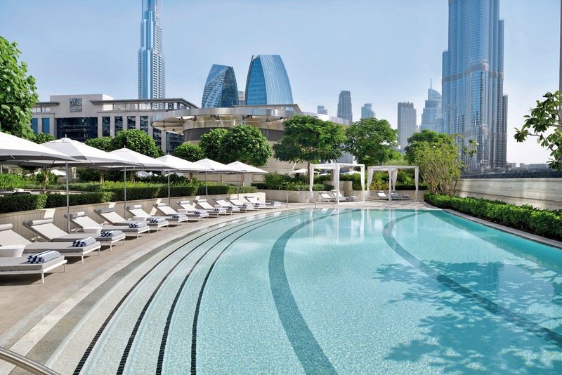 Exklusiver Adults Only Infinity Pool in luftiger Höhe mit atemberaubenden Ausblicken auf die Skyline von Dubai