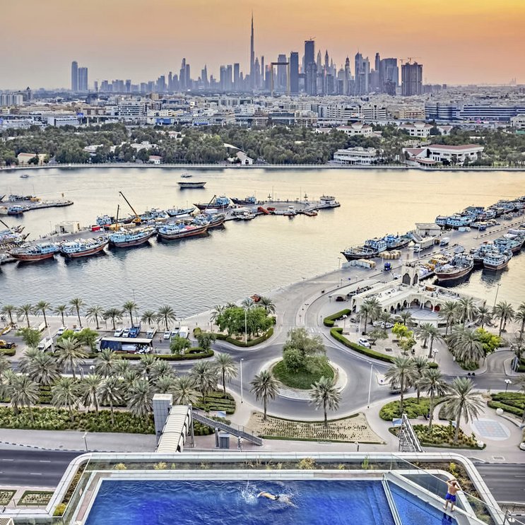 Das elegante Küstenhotel liegt am nördlichen Ufer des Dubai Creek in der Baniyas Road, einem der prominentesten Geschäftsviertel Dubais.