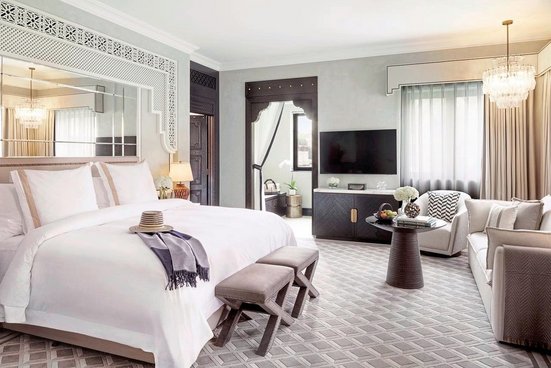 - 121-150 qm, Suite, Meerblick, 1 separates Schlafzimmer, separater Wohnraum, Dusche, Badewanne, WC, Bademantel, Badeslipper, Haartrockner, Klimaanlage, individuell regulierbar, Minibar kostenpflichtig, Safe, Bügelbrett, Bügeleisen, TV, WLAN, Wasserkocher, Kaffee/Tee, Terrasse (möbliert), Zutritt zur Club-Lounge, Frühstück in der Club-Lounge, Abends alkoholische Getränke in der Club-Lounge, nachmittags Kaffee/Tee und Gebäck, Snacks am Abend