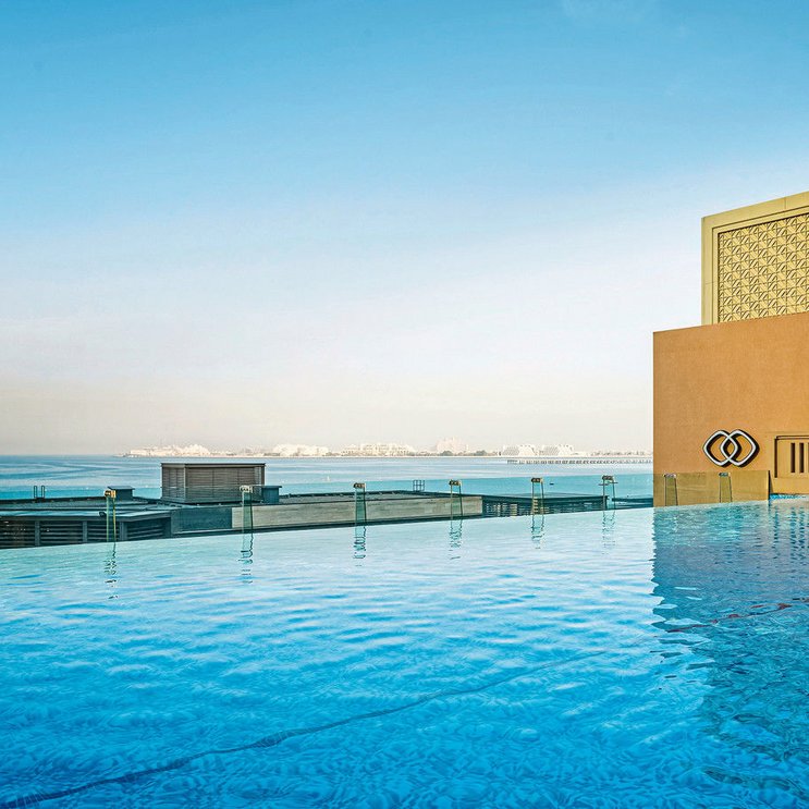 Infinity Pool mit Panoramablick auf „The Palm Jumeirah” und den Arabischen Golf