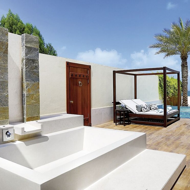 - 151-200 qm, Villa, Bettwäsche, Handtücher und Matratzen aus 100% Bio-Baumwolle, Sofabett, Außenbadewanne, Regendusche, Außendusche, WC, Bademantel, Badeslipper, Haartrockner, Klimaanlage, Ventilator, Minibar kostenpflichtig, Safe, TV, WLAN, Wasserkocher, Espressomaschine, Kaffee/Tee, Terrasse, direkter Meerzugang, Privatpool