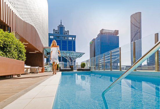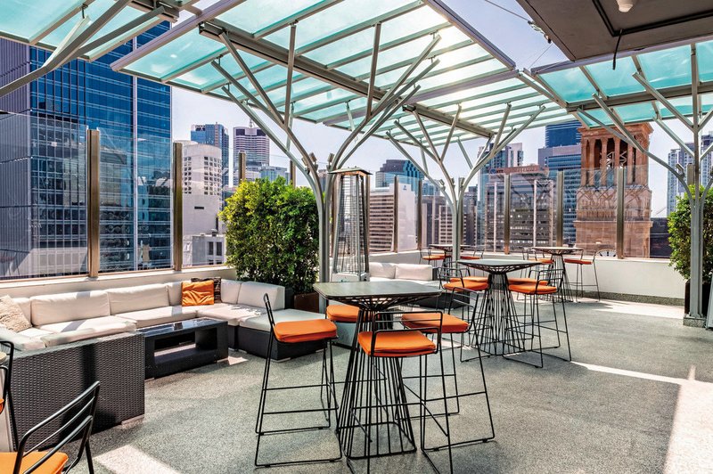 Rooftop-Pool & Bar: Heated Pool auf dem Dach mit Panoramablick auf die Stadt