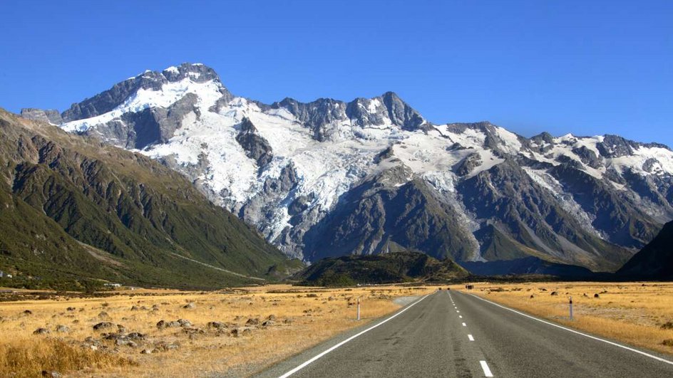Sie verlassen Christchurch und durchqueren die Provinz Canterbury. Der 709m hohe Burke-Pass, den sie im weiteren Verlauf schnell erreichen, ist relativ einfach zu befahren. Er ist das Eingangstor zum Mackenzie Country, eine karge, grasbewachsene Hochebene mit gletschergespeisten Seen. Unvergesslich bleibt der in der Sonne türkis schimmernde Tekapo-See, in dem sich die Silhouetten der benachbarten Berge romantisch spiegeln. Vom Lake Pukaki aus hat man bei gutem Wetter eine ausgezeichnete Aussicht auf die Berge des Mount Cook Nationalparks. Eine Nacht im MacKenzie Country Hotel. Ca. 400 km